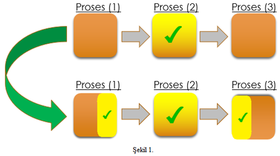 Satınalınan ürünün ve bu ürünün gireceği prosesin detaylarının çok iyi bilinmesi gerekliliği burada karşımıza çıkıyor. Bazı durumlarda inovasyonu sürecin en başında da sağlayabiliriz. Burada Satınalma & ARGE işbirliğinin sonuca olumlu etkisini göreceğiz. Özellikle kimyasal proseslerin yoğun olduğu işletmeler üzerinden örnek vermek gerekirse, tedarik edilen ürünlerin kullanıldığı proses öncesi ve sonrası aşamaları için de verimlilik artışına katkısı olabilecek ürün yetkinlikleri de incelenmelidir. Bu gibi durumlarda toplam süreç maliyetlerini %20 iyileştirecek bir ürün için %10 satınalma maliyeti artışı pek tabi ki kabul edilecektir. Şekil-1’de özetle tarif etmeye çalıştığım, 2 numaralı proses için talep edilen bir ürün yerine 1 ve 3 numaralı proseslere de maliyet, işçilik, verimlilik gibi konularda olumlu etkisi olabilecek bir ürünün kullanımına geçilmesi örnek olarak verilebilir.